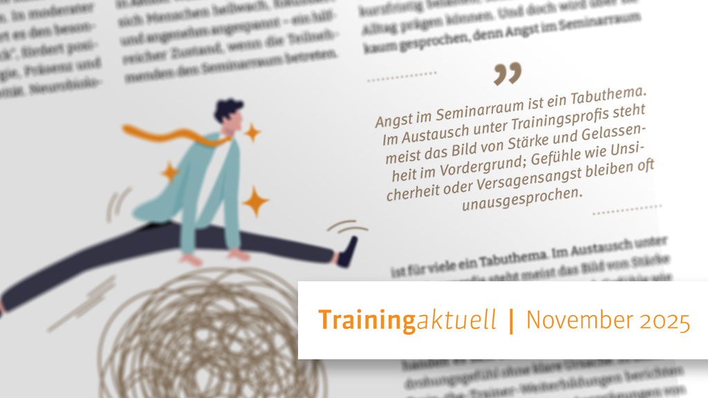 Dr. Petra & Ralf Dannemeyer über die „geheimen“ Ängste von Trainer*innen im Seminar: „Vom Wahrnehmen zum Überwinden“ in „Training aktuell“, der Zeitschrift für Training, Beratung und Coaching aus dem managerSeminare Verlag (Ausgabe November 2025).